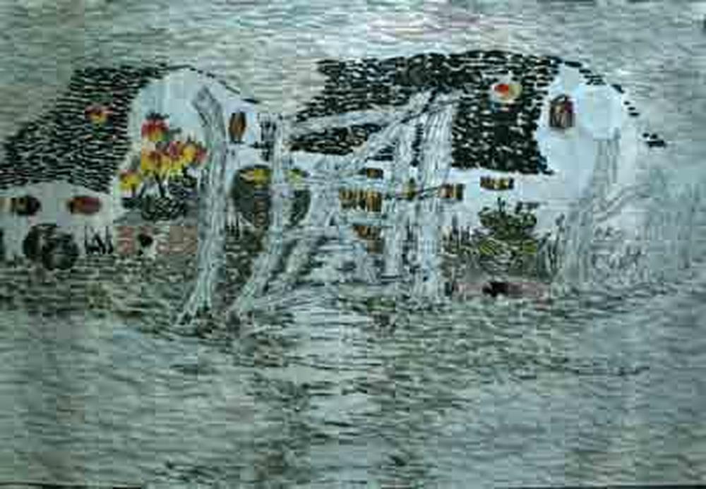 农村的印象,试着用线的手法表现了一下……